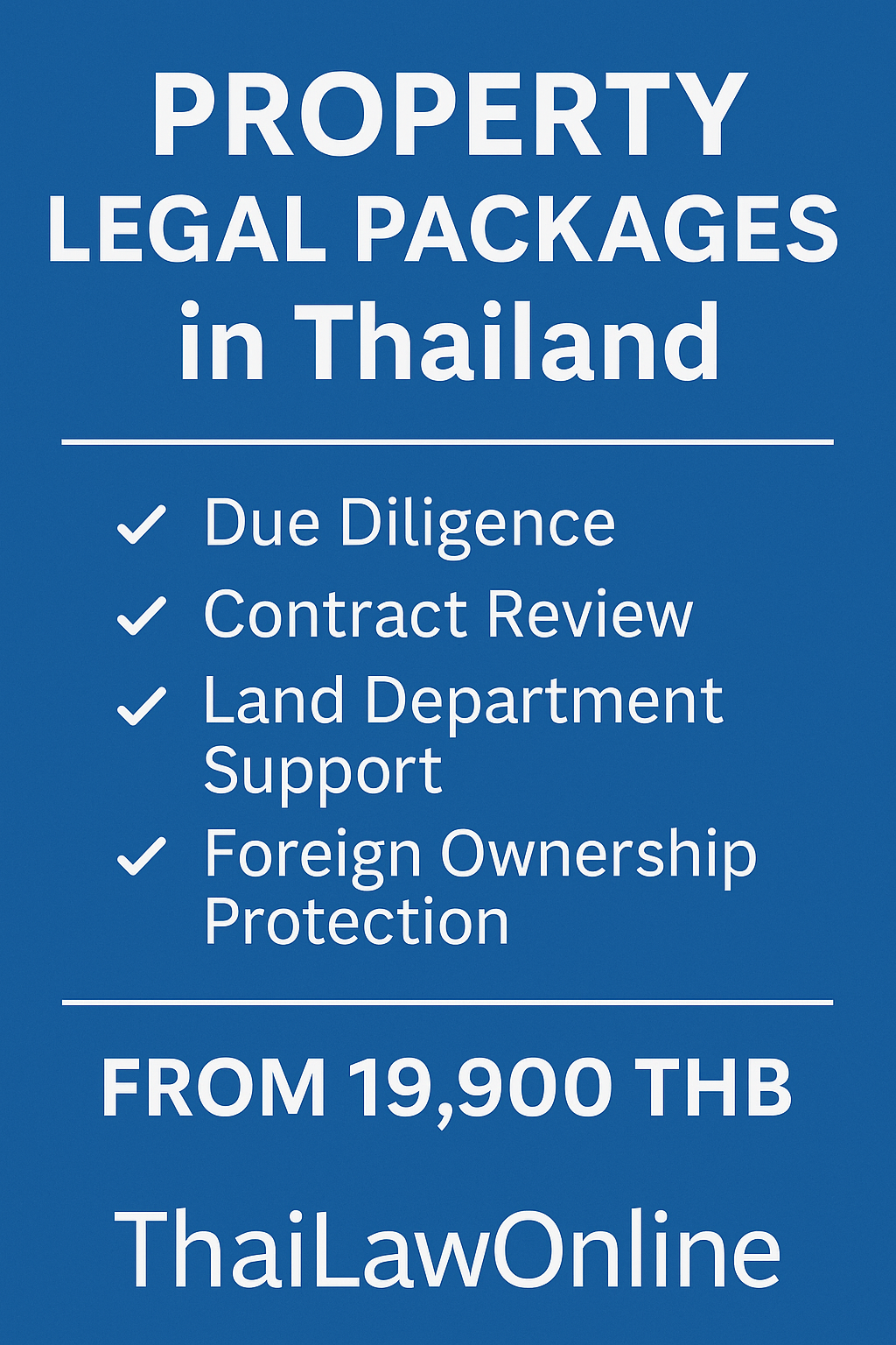 - Basic Property Package: 19,900 THB (for simple property transactions such as condominium purchases or low-risk properties)
