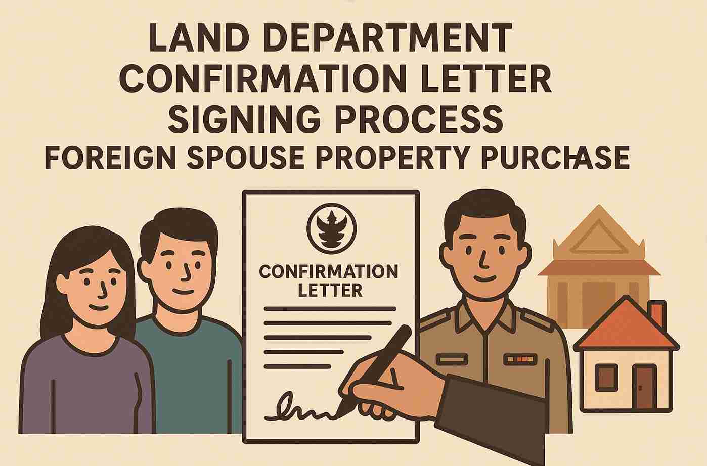 Both the Thai national and their foreign spouse must sign the confirmation letter. Ideally, this is done together in front of the competent official at the provincial or local Land Office on the day of the property registration.